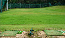 奥行きが200 Yあり、ドライバーの練習もできます。緑の芝生と、木々に囲まれた練習場で、正面の山に向かって打ち込むと気分は爽快。パターの練習場も緑の木々に囲まれており、青々とした芝生で練習できます。ラウンド前のウォーミングアップに、是非、ご利用ください。