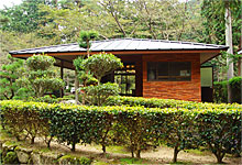 緑の森に囲まれた小高い丘のクラブハウスは、モダンで静粛な合掌づくりの2階建てです。春には満開の桜の木々がクラブハウスを包みこみ、ご来場いただいた皆様をお出迎えします。