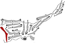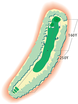 左サイドはOB。ティーショットは最短距離を狙うより、手堅くフェアウェイ中央を狙う。