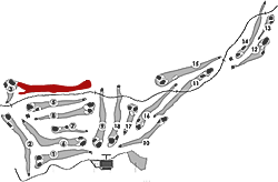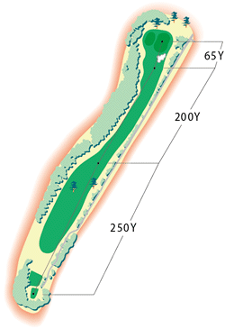 右は川、左は山にはさまれたロングホール。第二打のクラブ選択は慎重に。