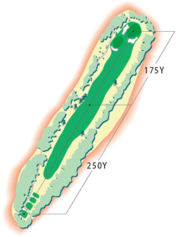 真っ直ぐで広く距離も十分なミドルホール。豪快なティーショットを。