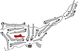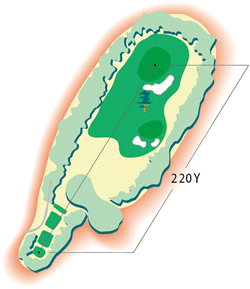 かなり距離のあるショートホール。パーをとるならグリーン中央か左サイドを狙う。