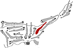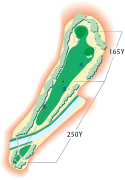 ティーショットは川越え。また右サイドに川がそっており、OBとなるのでティーショットの方向に要注意。